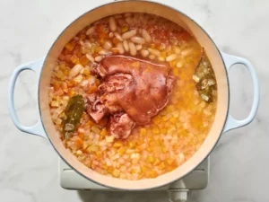 The Ham Hock Does Heavy Lifting: Even if it looks small, it brings big flavor. Let it do its thing before removing it.