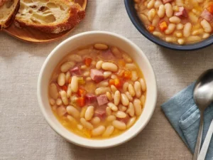 This basic ham and bean soup is simple, hearty, and deeply comforting. Made with tender great northern beans, a smoky ham hock, and classic vegetables, it’s the kind of slow-simmered soup that fills the kitchen with warmth. It’s budget-friendly, satisfying, and perfect for chilly evenings or make-ahead meals.