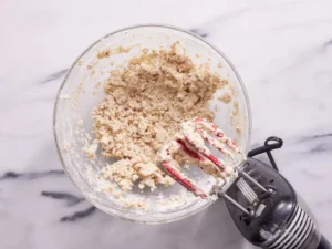 3. Add Dry Ingredients: Mix in flour, pecans, and salt until fully incorporated.