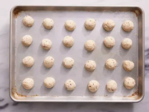 • Size = Bake Success: Make all the balls the same size. Once I made a batch with mixed sizes… some turned into rocks; others stayed doughy.