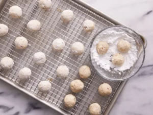 7. Second Sugar Coating: Once fully cooled, roll the cookies in powdered sugar again.