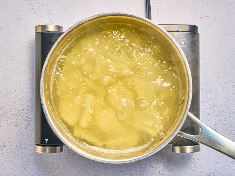 Step 4: Bring to a boil, then simmer until the potatoes are very tender. This usually takes about 15 minutes.