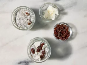 Serve: Stir the pudding and top with coconut and raisins before serving.