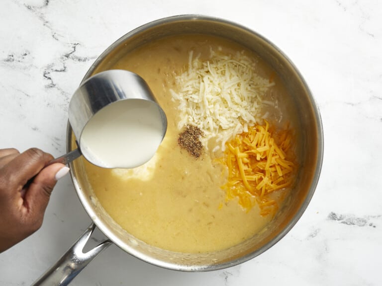 Transfer and Top: Pour into a baking dish and top with remaining cheese.