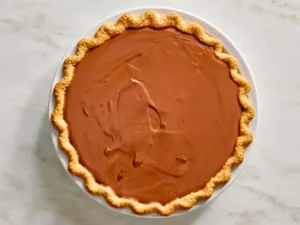 Fill the Pie Shell: Pour the warm chocolate filling into the prepared pastry shell.
