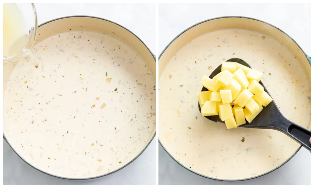 • Add the potatoes: Peel and dice them evenly. Add to the pot and cook for 20 to 25 minutes until fork tender.