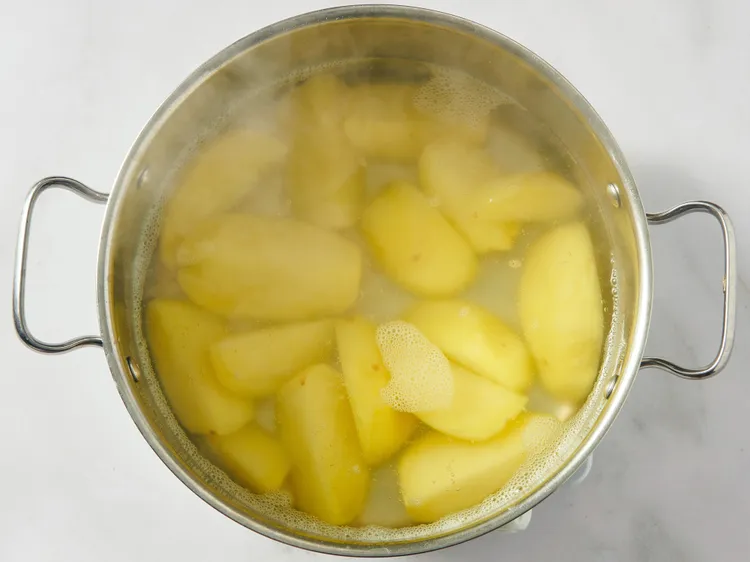 Step 3: Bring to a boil, then reduce heat and simmer for about 20 minutes until the potatoes are tender.