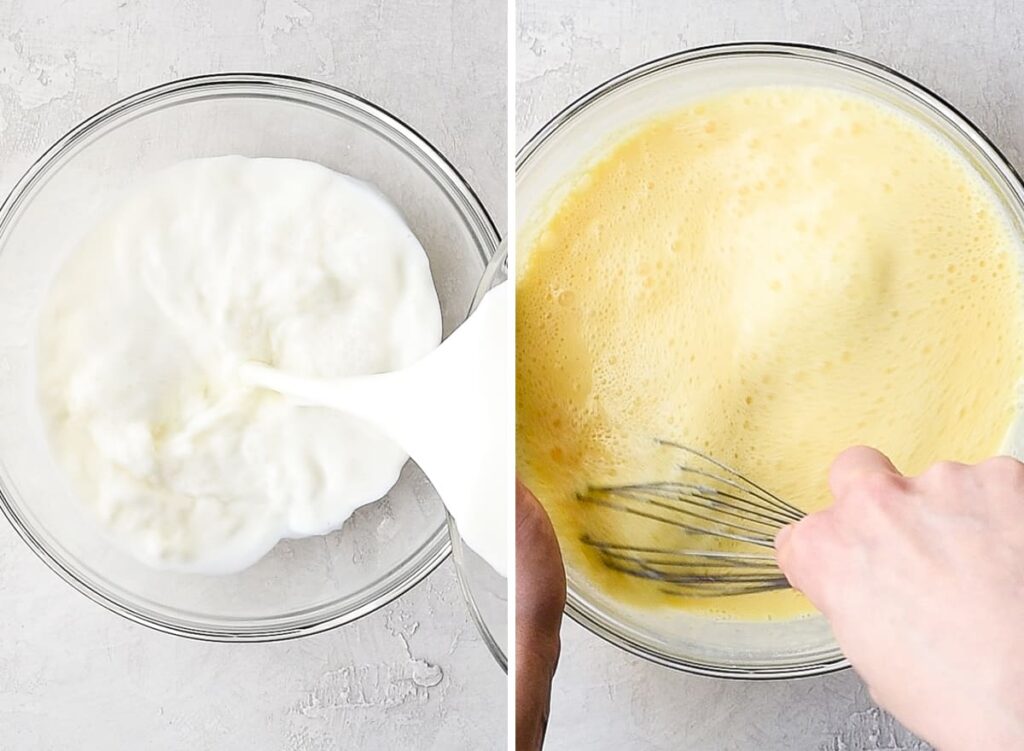 Place over medium heat and slowly pour in milk while whisking until fully combined.