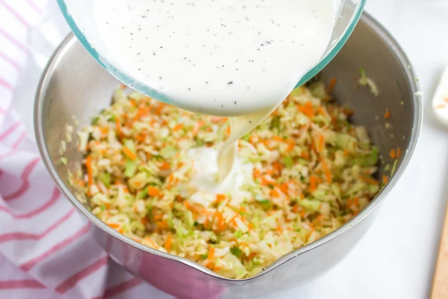 4. Pour the dressing over the cabbage mixture and mix well until evenly coated.