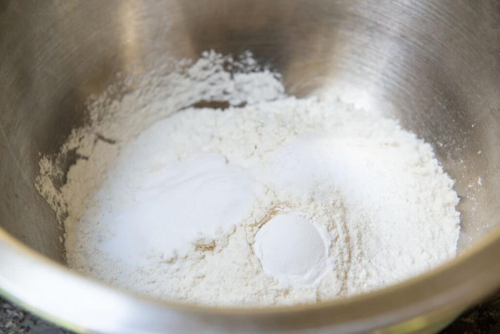 Prepare Dry Ingredients: In a bowl, whisk together flour, baking soda, baking powder, and salt.