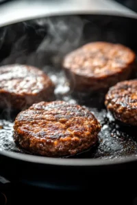 3. Heat a little olive oil in a skillet and sear the patties for 3–4 minutes per side until golden and juicy.