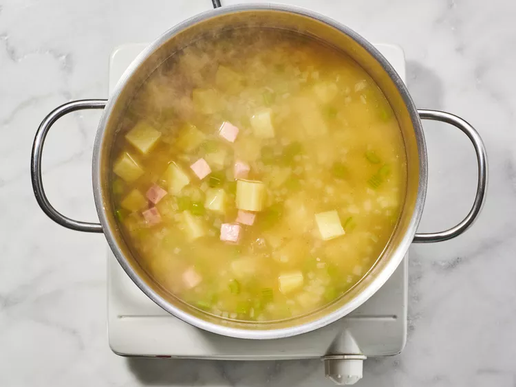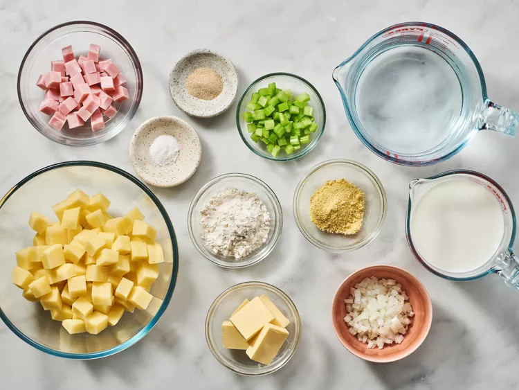 Start the Base: In a large pot, combine potatoes, water, ham, celery, and onion.