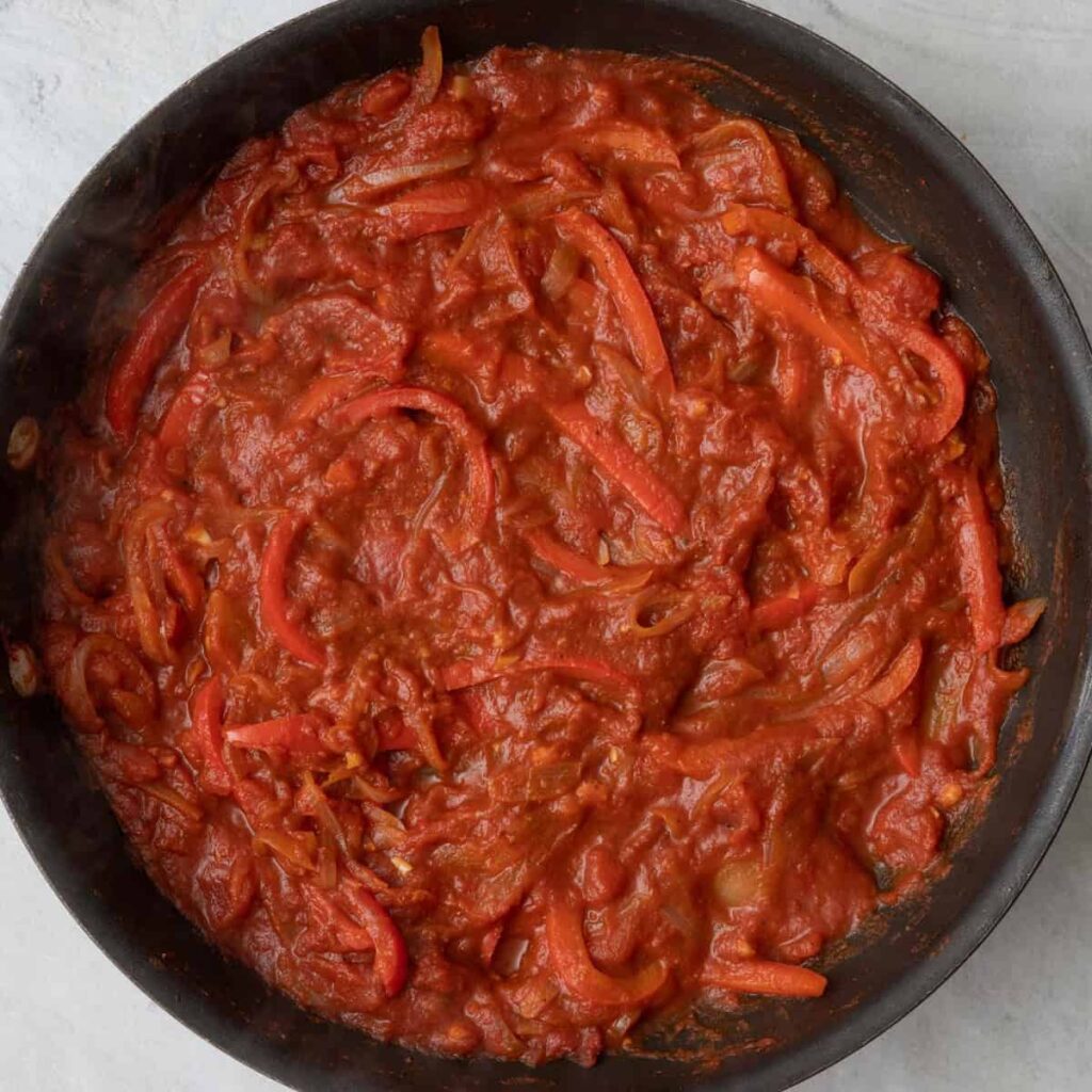 4. Bring the mixture to a boil, then reduce the heat to low. Let it simmer for 10–15 minutes, until the sauce thickens to a stew-like consistency.
