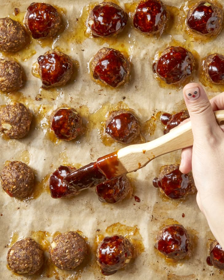 4. Place the meatballs on a lined baking sheet, spacing them evenly.