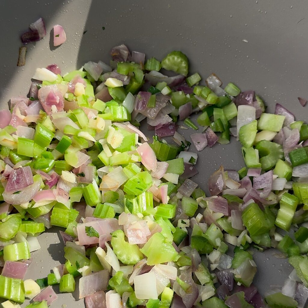 Start with the Base: Sauté jalapeño, onion, garlic, and celery.