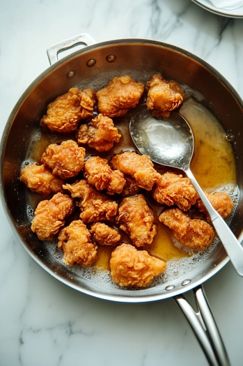 What came out of my kitchen was a small miracle: golden, crunchy chicken bites tossed in that sweet, spicy, sticky sauce that makes your taste buds dance. I remember standing by the stove, eating them straight off the pan with chopsticks like it was a life-or-death situation.