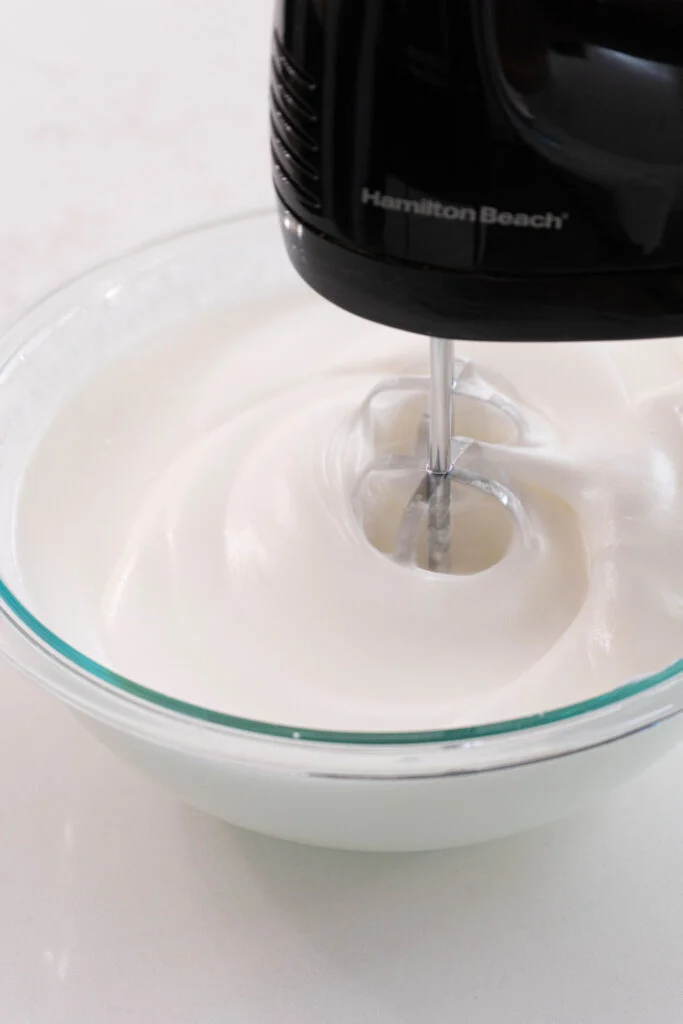 In a separate medium bowl, beat the egg yolks using clean beaters until thick, foamy, and pale yellow. This may take several minutes. Gently fold the whipped yolks into the egg whites until fully combined.