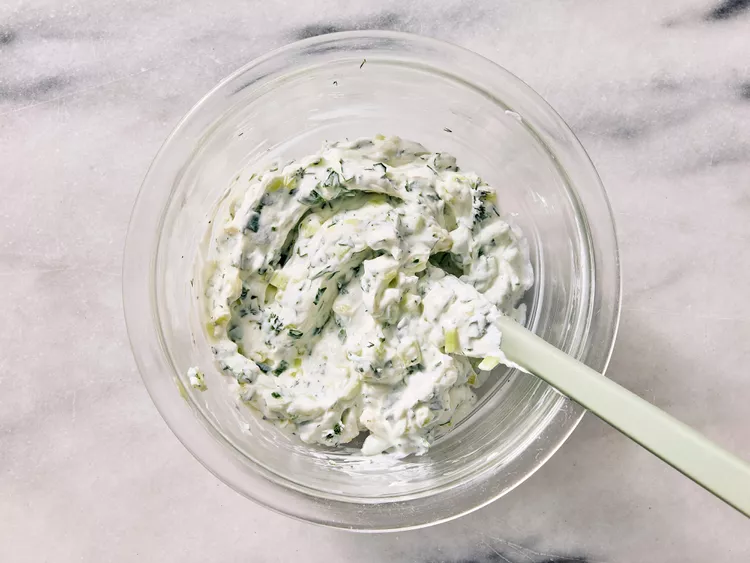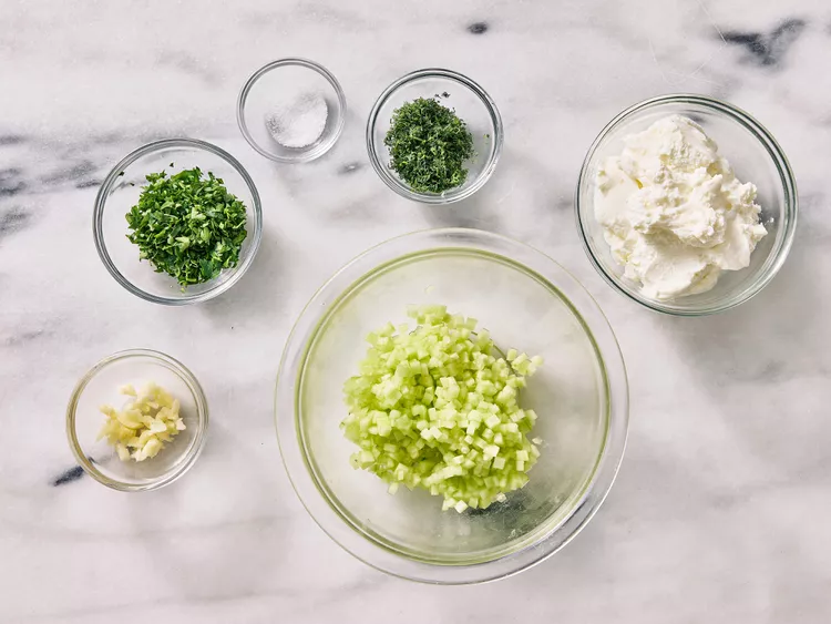 Combine Ingredients: Add cucumber, yogurt, herbs, and garlic to a bowl.